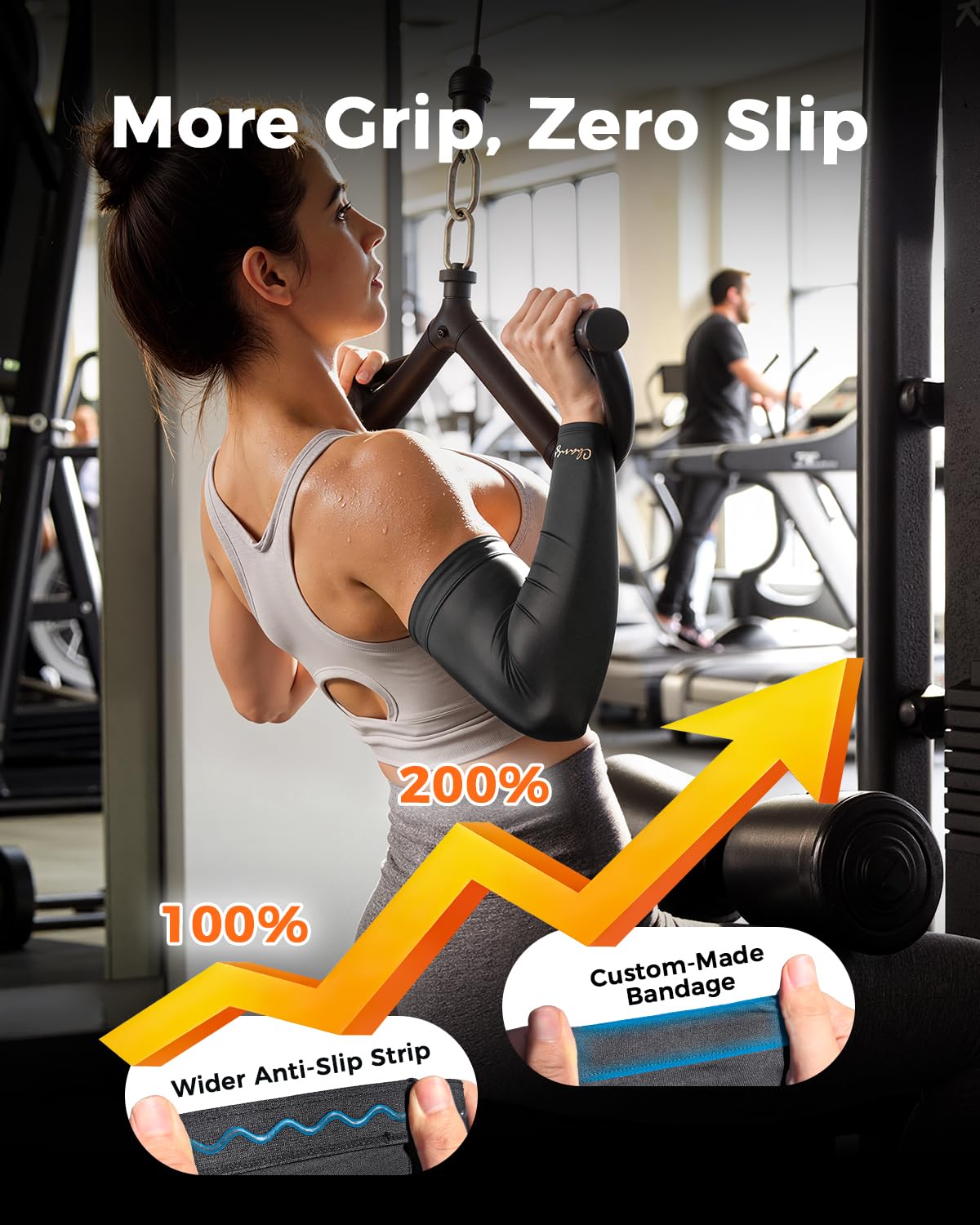 【Double Anti-Slip Design】Wider anti-slip strips & custom-fit straps keep sleeve secure during intense workouts. No slipping for focused performance.
